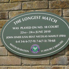 The Isner–Mahut match at the 2010 Wimbledon Championships holds the record for the longest tennis match both in time and games played.